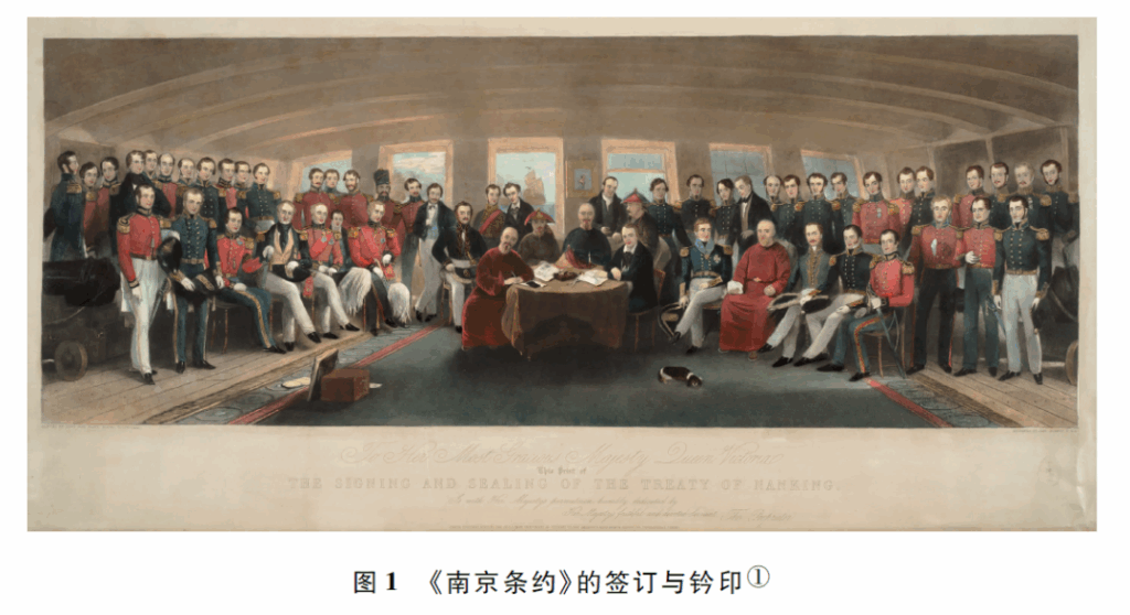 《签订图》描绘的是《南京条约》签约场景和出席仪式的中英官员。该图广泛地出现在当代中文教材、宣传画册或历史书籍之中,几乎是中国读者了解签约现场的唯一图像资料。但该图的来历尚未得到细致梳理,图像蕴含的丰富历史信息也没有得到完整发掘。因此,剖析《签订图》的内容和绘制过程,是重审《南京条约》影响、补全第一次鸦片战争末期历史语境的首要步骤。
