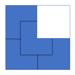 例1. 不规则图形等分一个正方形去掉1/4形成的图形。问剩下的块如何分割使其分成全等的四份。