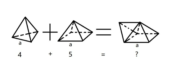 例1. 现有各棱长均相等的一个正三棱锥和一个正四棱锥,当将它们的一个侧面完全重合地粘贴在一起后,新形成的几何体有几个外露面?