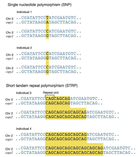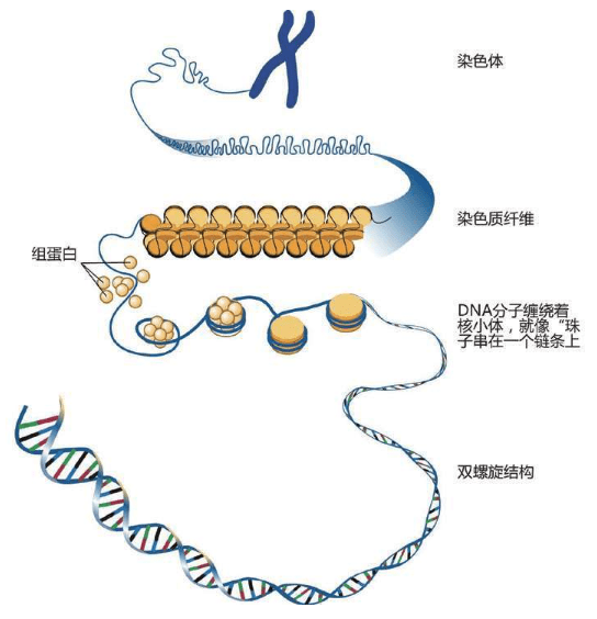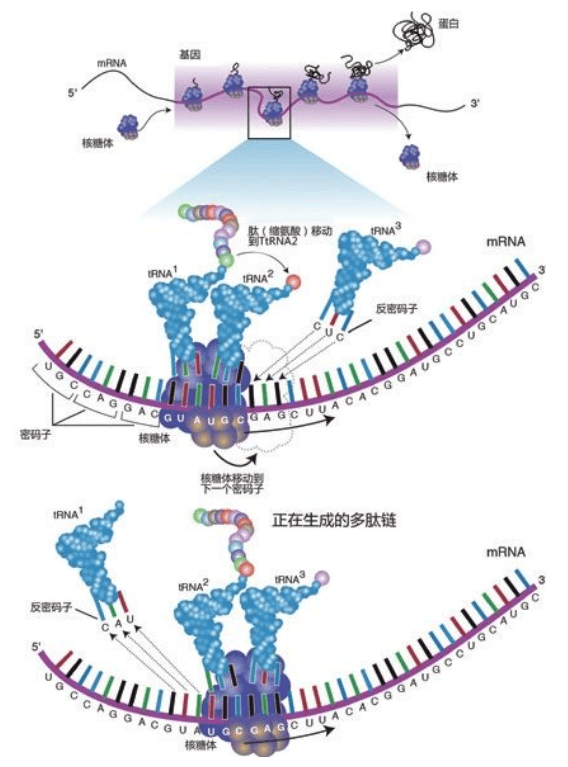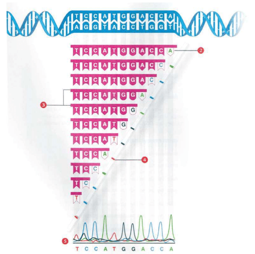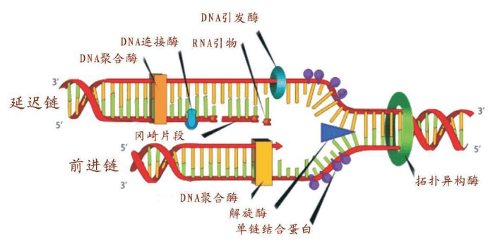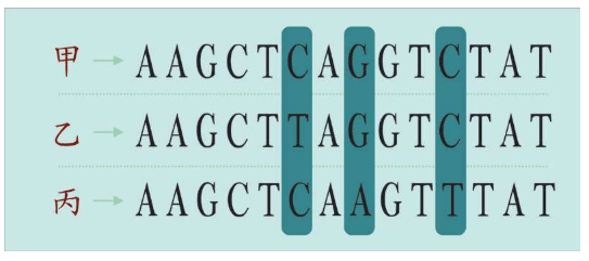 D NA的复制过程如下: 由一批不同类型的小小复制机器——聚合酶(polymerases),先把双螺旋的两个链条打开,然后辛辛苦苦地分别复制两个链条的互补部分,分别形成另外两个DNA分子的双螺旋,使得一个DNA双螺旋变成了两个DNA双螺旋。这里只有一个简单的不可侵犯的法则:A永远配对T;C永远配对G。(1984年,遗传学家阿莱克·杰弗里斯(Alec Jeffreys,1950-)发现:3-30个碱基对的短核苷酸序列,在基因组里可以重复20-100次。他把这种重复序列组称为“微卫星”,或随机重复变量(VNTRs,variable number of tandem repeats)。人类基因组中这些区段的数量和位置,每个人都不一样。在人类的旅程的探索中,这种“微卫星”技术大量运用,找出了各地的人类群体差别以及群体之内的个体之间的微小差异)
