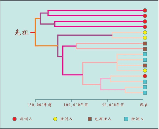 1987年1月,美国一个在读遗传学女博士丽贝卡·卡恩(Rebecca Cann)和她的同事们在英国《自然》(Nature)杂志发表了一篇论文:《线粒体DNA和人类的演化》(Mitochondrial DNA and Human Evolution)。论文认为:人类起源只有一个,这个起源可能在非洲,时间在20万年以内。尽管几乎不可思议,但DNA数据研究分析却证明了:今天所有的地球人都来自同一个共同祖先。