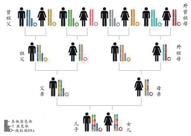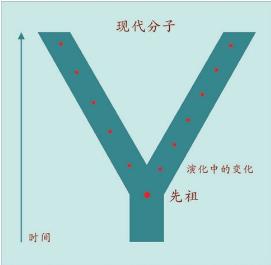 我们再来看看Y染色体。Y染色体活跃基因丧失的情况与线粒体类似,虽然平均每对染色体有1 500个活跃基因,但是Y染色体上只剩下21个活跃基因,其中一些基因还是重复的,随机复制的。更有趣的是,这21个活跃基因只参与一项工程——制造男性。其中一个基因决定性别,称为Y染色体性别决定区,缩写SRY(Sex-determining Region of the Y)。其他的活跃基因负责决定其他男性特征(例如男人的外貌、长相、行为举止等)。Y染色体上的其他基因什么功能也没有,被称为“垃圾DNA”(junk DNA)。这些“垃圾DNA”也许是生物学的垃圾,却是群体遗传学家的金砂。
