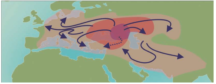 1786 年,在英属印度担任法官的语言学家威廉姆·琼斯爵士(Sir William Jones,1746-1794,发现梵语与拉丁语和希腊语非常相似),在大量研究分析的基础上提出印欧语系(Indo-European language family)的概念,即欧洲到印度的大片地区所有的语言有一个共同起源。这种假设,最终得到广泛承认。