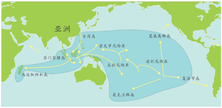 波利尼西亚是太平洋中央几千个岛屿的统称,波利尼西亚人是这些岛屿原住民的统称,从夏威夷的土著到新西兰的毛利人(Maori people)都属于这一范畴。波利尼西亚(Polynesia)一词源自希腊语:poly意为众多,nesoi意为岛屿。1756年法国作家Charles de Brosses(1706-1777)第一次使用这个词,当时泛指太平洋上的所有岛屿。现在的波利尼西亚(Polynesia)的范围也没有严格界定:从美国洛杉矶出发,飞向新西兰首都奥克兰经过的海域就是波利尼西亚,距离约1.2万千米,飞行约14个小时。飞机下面一望无际的辽阔海域散布着数以千计的岛屿。