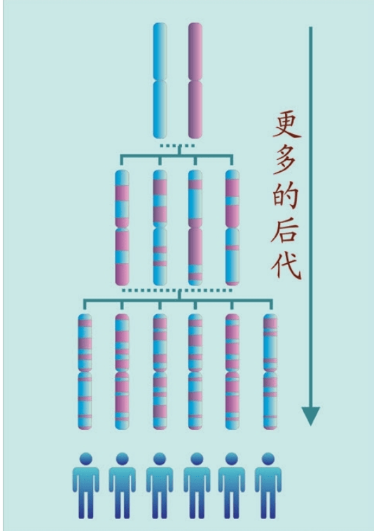 1980年代,人类在细胞里发现了一个小的结构:线粒体(mitochondrion)。2000年代,人们终于知道,线粒体是十几亿年以前第一批复杂细胞进化过程中留存下来的一类细菌。也就是说,我们的单细胞先祖们曾经吞噬了一种古代细菌,因为这种细菌在细胞内部可以生产能量,最后,这种被吞噬的古代细菌从一种“寄生虫”演变成一座亚细胞能量工厂(sub-cellular power plant)。非常幸运的是,与细菌的基因组类似,线粒体基因组(mitochondrial genome或者mtDNA)只有一套复制品,也就是说,它们不会重组。光明和希望再次出现。