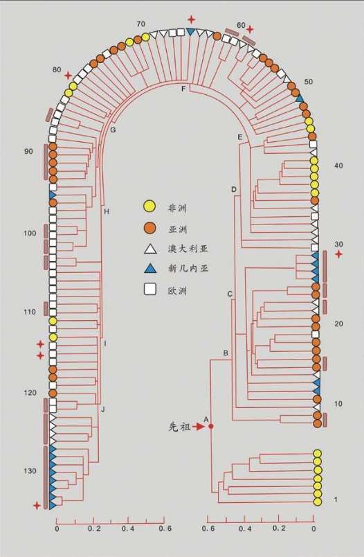 基因图谱工程采用的单倍群编码。图片来源:美国国家地理协会